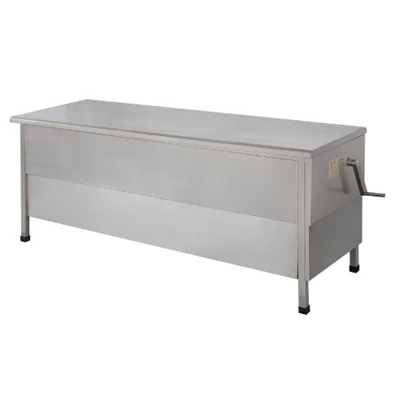 该解剖台螺柱升降,齿轮式传动,传动平稳牢靠,带抽风功能。下风口有方形和圆形两种,两层箱体,有标本储藏及净化功能。