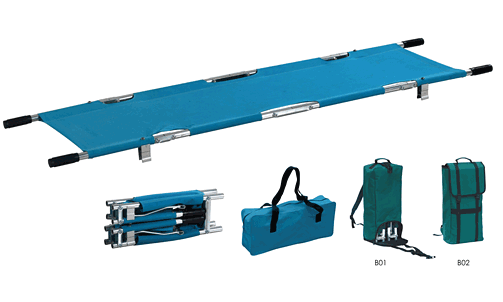 本担架带支撑腿,可纵向和横向折叠,带手提背包。采用高强度铝合金材料和牛津革担架面制成,它具有重量轻,体积小,携带方便、使用安全、易消毒清洗等优点,主要适用于野外救护。