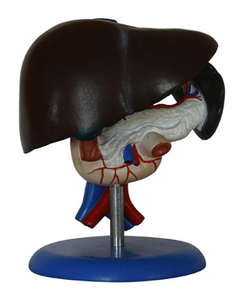 这是一款经济型的模型,用于学习肝、脾、血管和胰腺的基本结构,可显示外部结构和胰腺上的胰腺管,也可显示腹腔动脉和大静脉。自然大,分成3件。用PVC制成,安放于塑料座上。尺寸:23x12.5x26.5 CM。