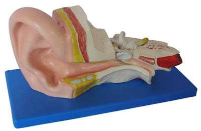 中型耳模型,适合初级科学课程使用,显示有关听力和平衡的所有主要结构。分成2件,3倍放大。用PVC制成,安放于塑料座上。尺寸: 32x16x11 CM。