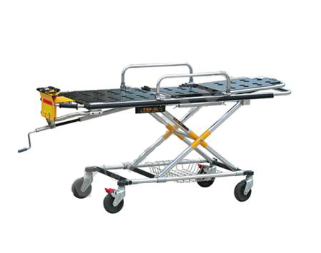 · 该抢救床,供医院病房转移伤病员之用。· 采用高质铝合金材料。· 担架面采用金属铝板制成。·轮子尺寸:宽胎Φ150mm