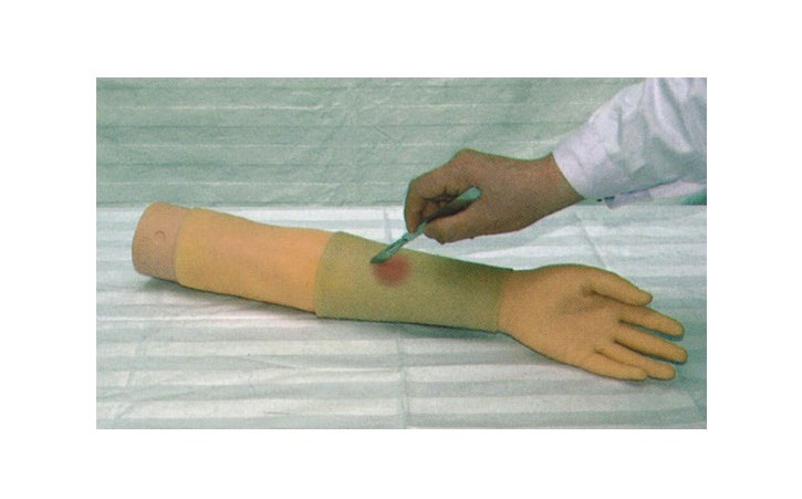 上肢脓肿切开模型采用先进高分子材料制作,1个分脓肿,脓肿处可见局部皮肤隆起,其周围有一潜行小脓肿,用于训练脓肿切开后的处理。
