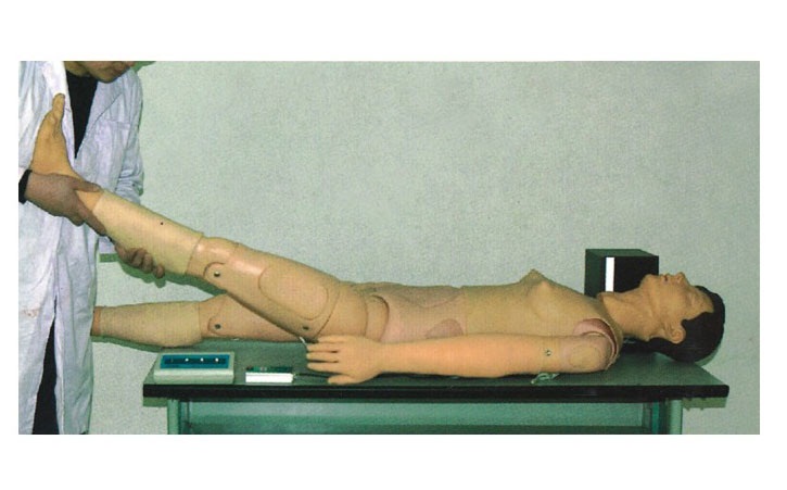 病人其内脏、肌肉皮下组织、皮肤以及病人的各关节活动均有高仿真性,为国内外首创,是我公司专利产品。电子标准化病人特征是:(1)四肢可自由运动,机体组织损伤部位有运动障碍;(2)病变部位有明显压痛点;(3)有感觉异常;(4)有神经反射;(5)肌力下降。病变部位准确,检查结果真是符合临床实际,可供学生反复进行腰椎间盘突出症检查、诊断训练。